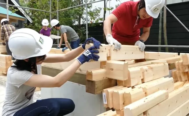 自分で。仲間といっしょに。建てるところから楽しみがはじまります。自作しやすい、ログ小屋建築の材料を一式揃えたコンプリートキットで納品。各工程は動画付きのビルドマニュアルで解説しています。